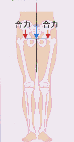 片脚立位、歩行時: 骨盤を平行に保つために強い外転筋(主に中殿筋)力が働き、合力の大きさは体重の約3倍となる。さらに、走ったときや運動時には、この数倍の合力が股関節にかかることになる。